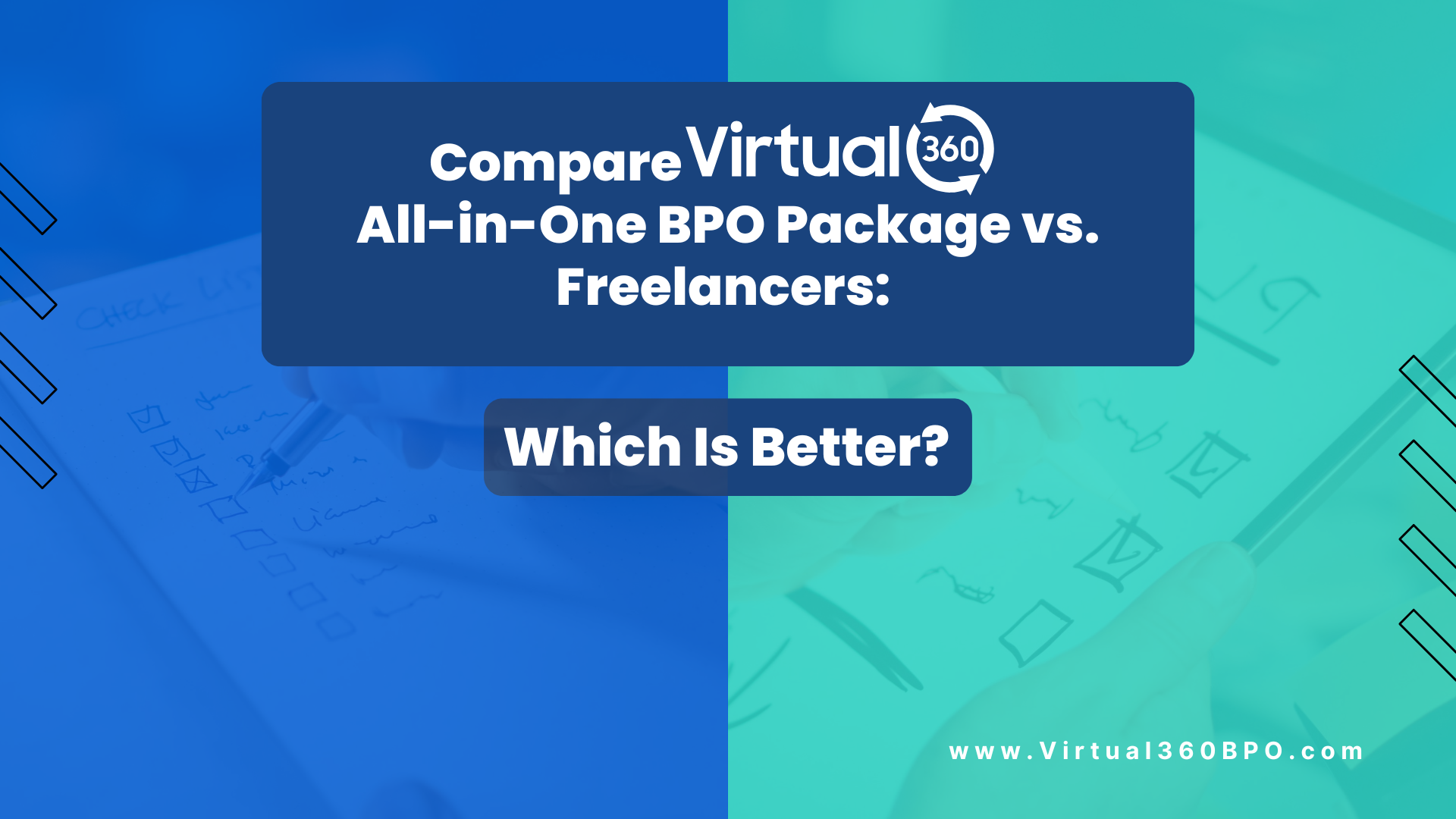 If you need multi-function support with coordinated oversight, the All-in-One BPO Package from Virtual360 may suit your business. If you need focused expertise for defined projects, freelancers remain a practical choice.